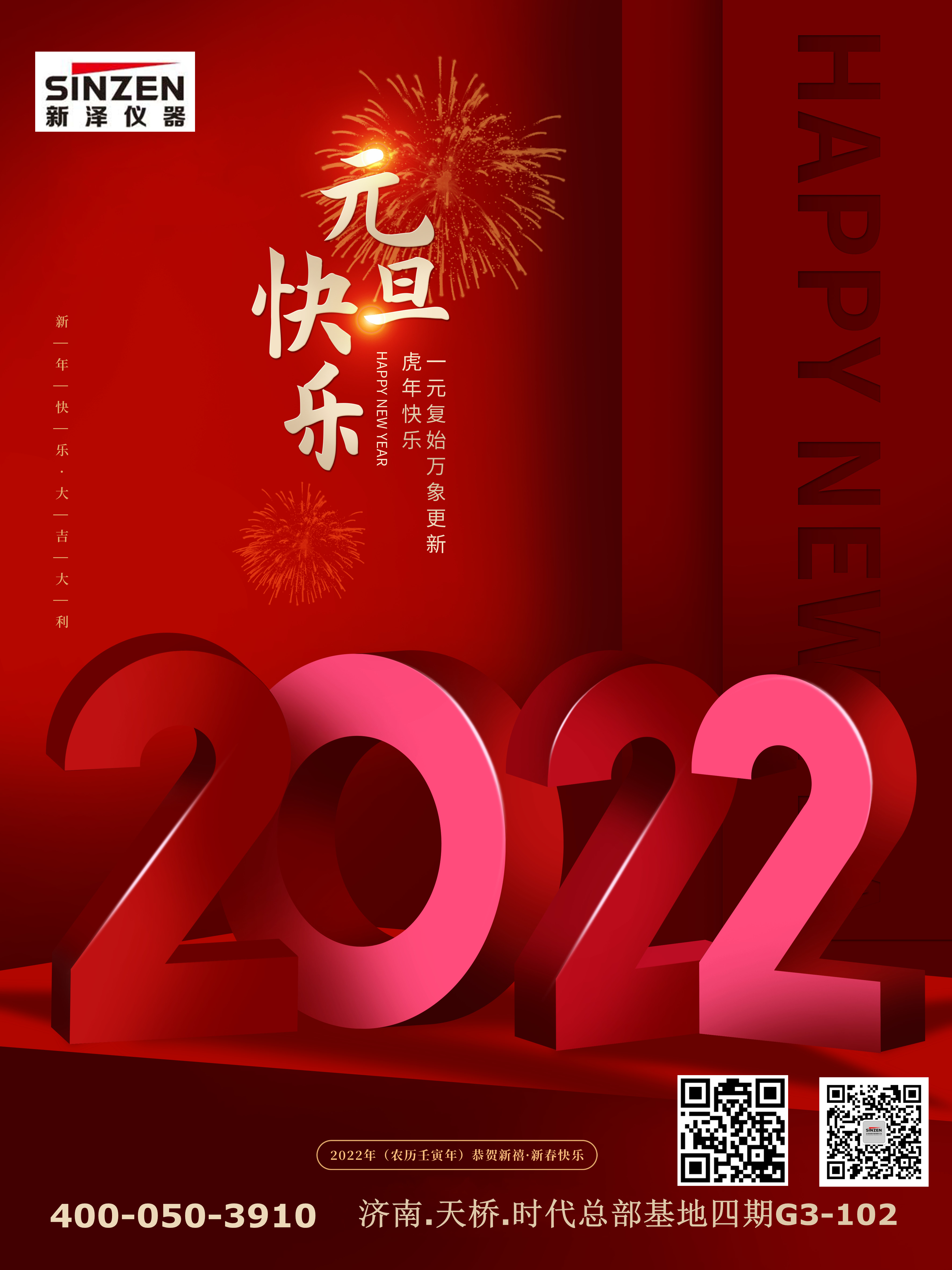 盛世迎春山河秀,神州煥彩萬物新。正值辭舊迎新的美好時刻,山東新澤儀器有限公司向一直關心支持公司發展的各級領導和各界人士,向辛勤奮戰在工作一線的成員們,致以最衷心的新年問候和美好祝福!