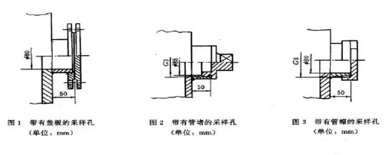 在選定的測定位置上開設(shè)采樣孔,采樣孔的內(nèi)徑應(yīng)不小于80mm,采樣孔管長應(yīng)不大于50mm。不使用時應(yīng)用蓋板、管堵或管帽封閉(如下圖所示)。當(dāng)采樣孔僅用于采集氣態(tài)污染物時,其內(nèi)徑應(yīng)不小于40mm。