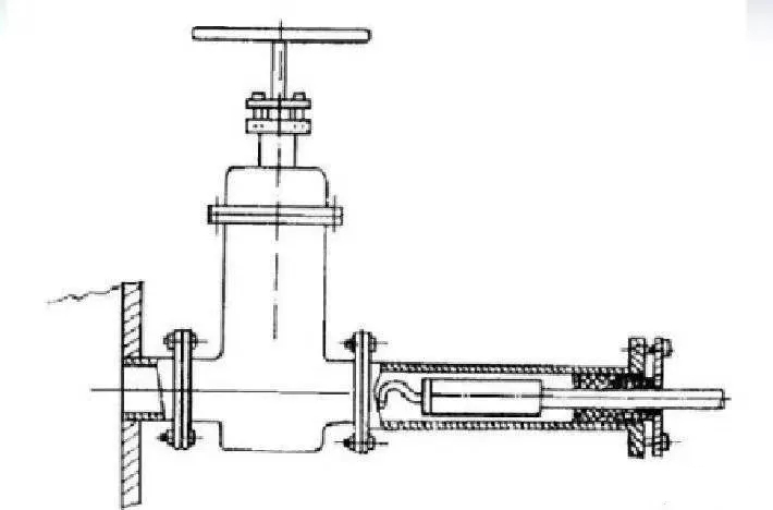 對正壓下輸送高溫或有毒氣體的煙道,應(yīng)使用帶閘板閥的密封采樣孔(如下圖所示)