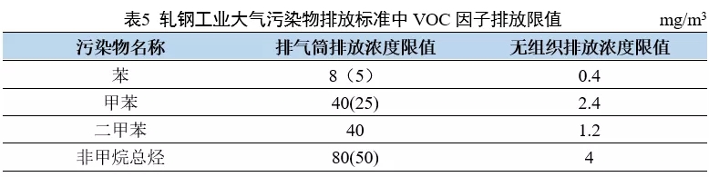 本標準包括在鋼材表面涂鍍金屬或非金屬的涂、鍍層鋼材的加工過程,因此類生產工藝過程中有揮發性有機物的排放,因此涉及揮發性有機物排放限值要求。括號內代表特別排放限值,下同。