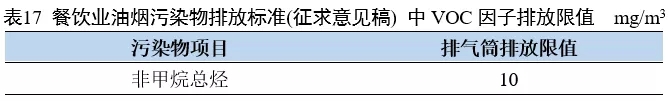 《餐飲業油煙污染物排放標準(征求意見稿)》中對于VOC的要求見下表。