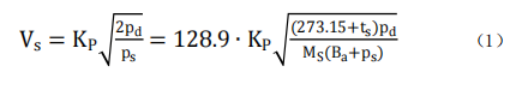 SVPT-100 型溫壓流監(jiān)測儀是基于傳統(tǒng)皮托管的差壓測量原理設(shè)計的。測量時,將“S”型皮托管插入管道中,并使皮托管的全壓和靜壓測孔中心軸線固定在過流斷面中心且與流線方向一致,全壓測孔正對氣流方向,同時靜壓測孔背對氣流方向。煙氣的流速與其動壓平方根成正比,根據(jù)測得某測點處的動壓、靜壓以及溫度等參數(shù),測點氣流速度 Vs 按式(1)計算
